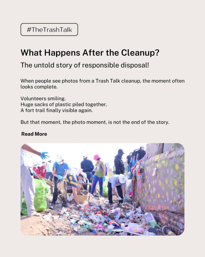 When people see photos from a Trash Talk cleanup, the moment often looks complete. Volunteers smiling.Huge sacks of plastic piled